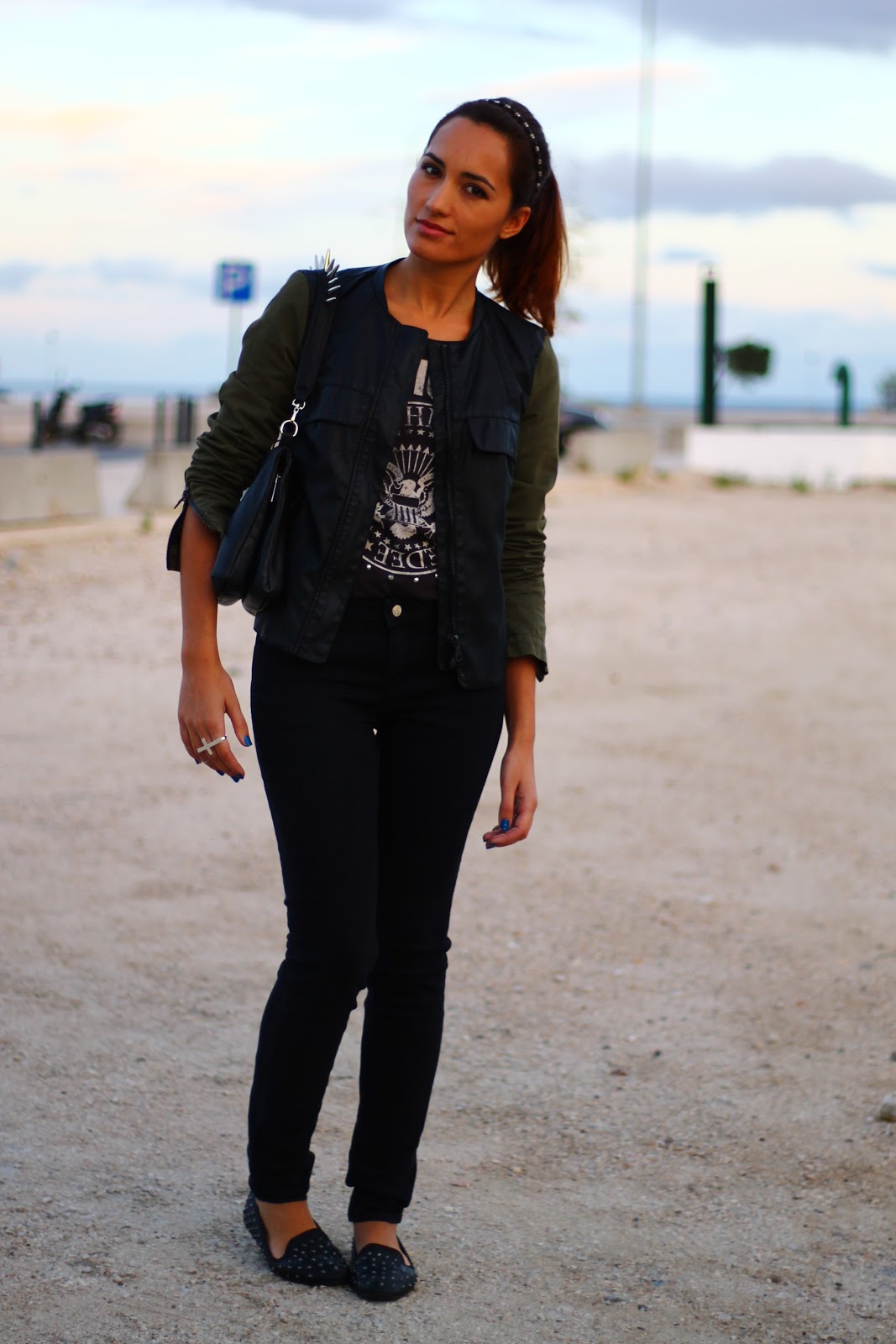 Deixo-vos com o meu look do primeiro dia da Moda Lisboa. Estou completamente viciada nesta mala com spikes da Zara. Faz toda a diferença num outfit. O top dos Ramones é outra das minhas perdições! Gostam?
