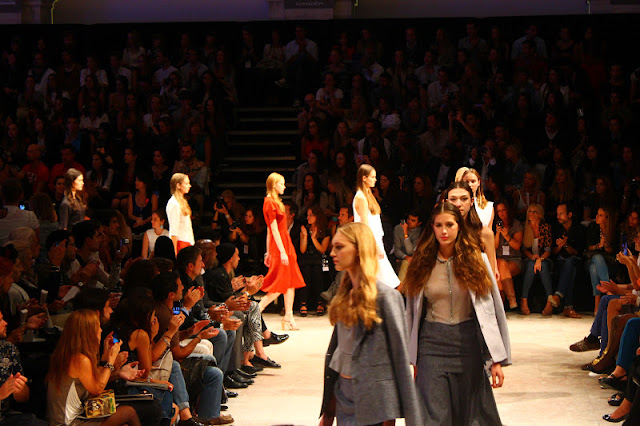 Deixo-vos algumas fotos do desfile de Pedro Pedro que tirei na Moda Lisboa. O criador inspirou-se nos anos 70 e 80 na elaboração da sua coleção. Modernidade e romantismo estão presentes nas silhuetas de formas soltas, longas e fluídas em contraponto com peças mais severas e rígidas.