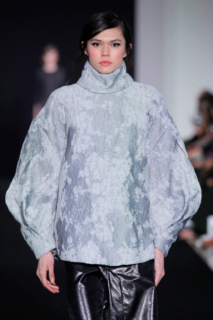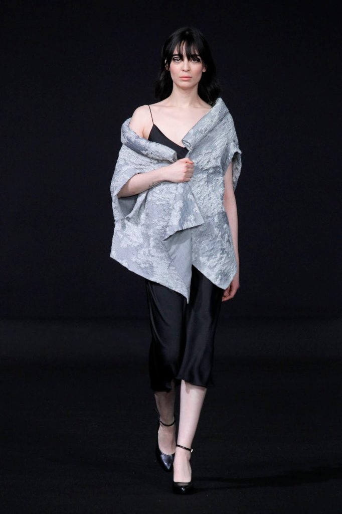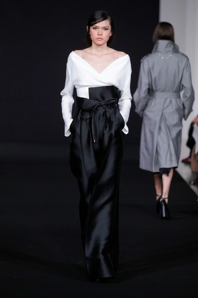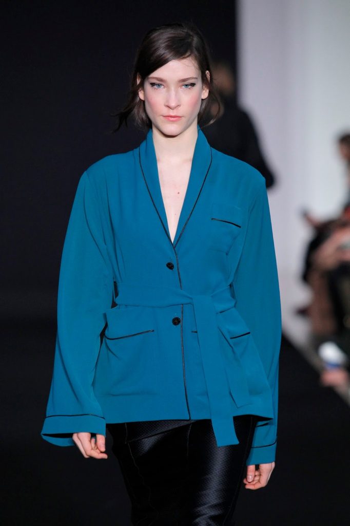 Diogo Miranda closes again the show at Paris Fashion Week with the Depeche Mode’ song “Behind the Wheel” (talisman, is it?). Definitely, this collection is incredible, with opulent oversized coats and where dark colours takes primacy. Ivory and Riviera blue appears discreetly in this collection.