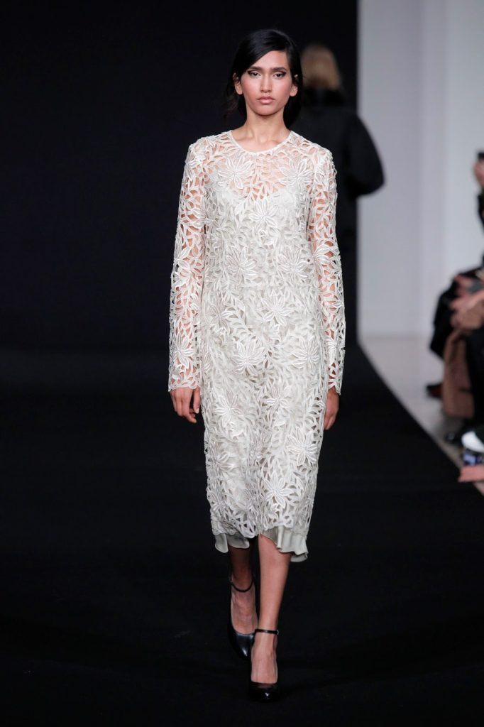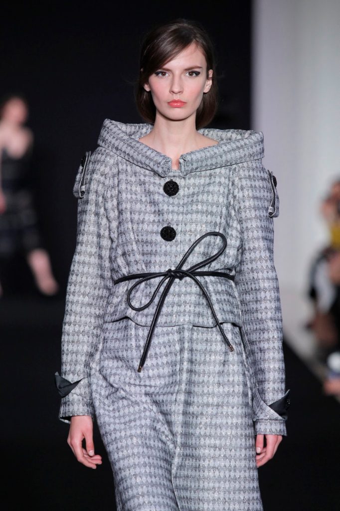 Diogo Miranda encerra uma vez mais o desfile na Paris Fashion Week com a música “Behind the Wheel” dos Depeche Mode (amuleto da sorte, será?). O que é certo é que a coleção está fantástica, com opulentos casacos e onde se dá primazia às cores escuras. O marfim e o azul Riviera aparecem timidamente nesta narrativa contada a preto e branco.