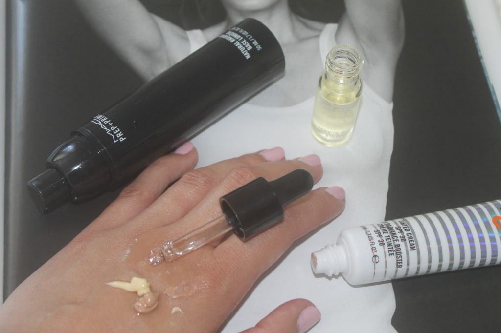 3. Óleos essenciais / Essential Oils – É ótimo para dar aquele ar à pele acabado de sair do ginásio (só uma gota), muito em voga nas passerelles e Red Carpet. Junto a gota de óleo ao CC Cream e à pré-base (como podem ver abaixo). Também gosto de colocar uma gota ao creme de noite antes de dormir.