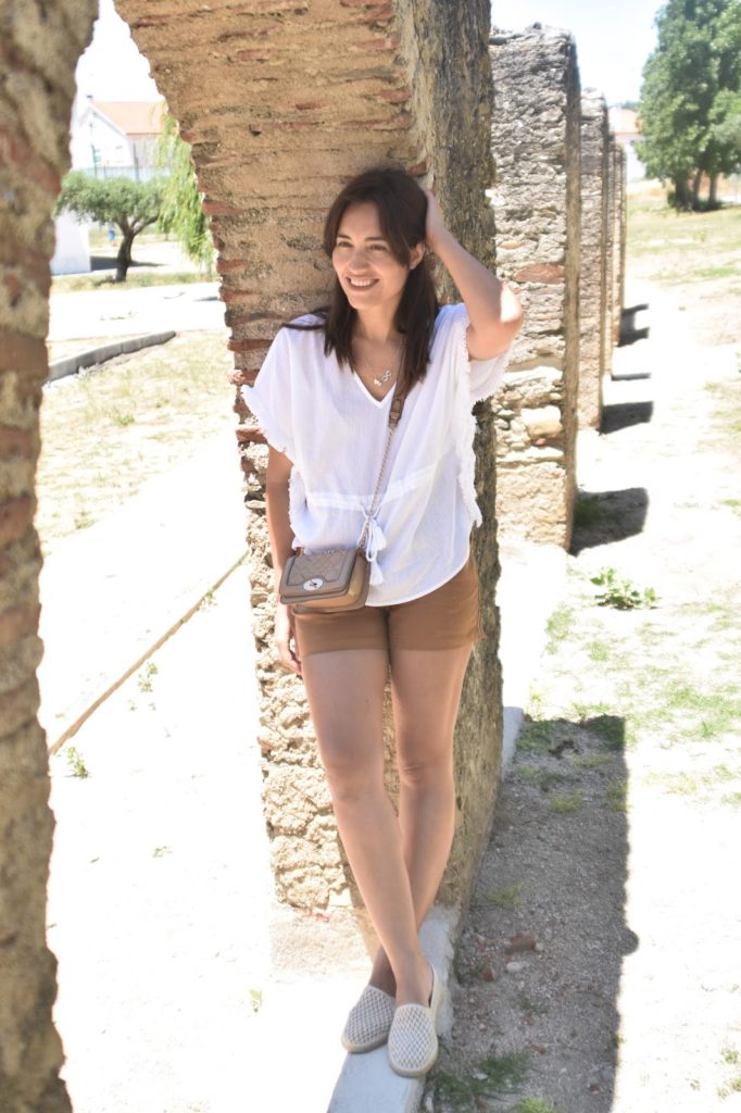Combinei estes calções com uma blusa branca com decote em V adornada com tassel e franjas. Já devem ter reparado que o tassel é uma das grandes tendências deste ano, visto em muitos desfiles e agora nas ruas.