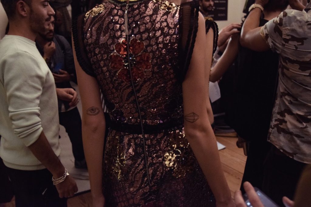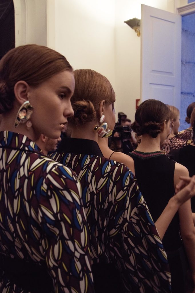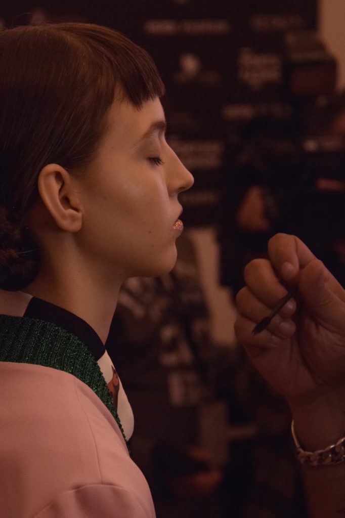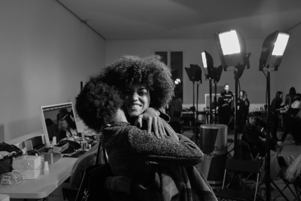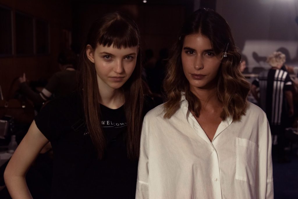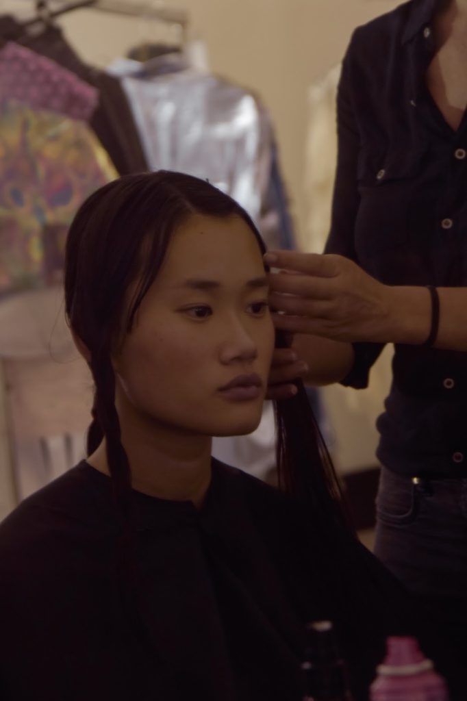 Diana Pereira nos bastidores para desfilar para Elsa Barreto