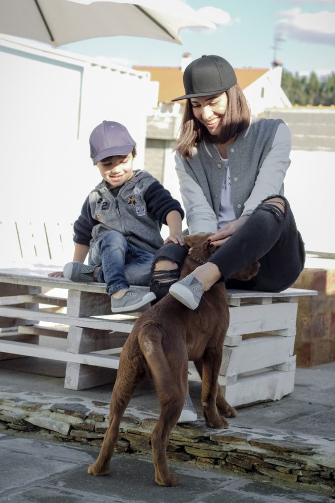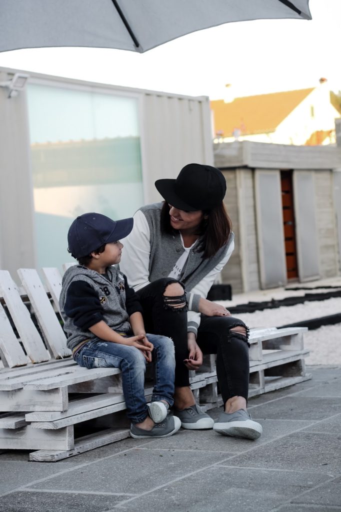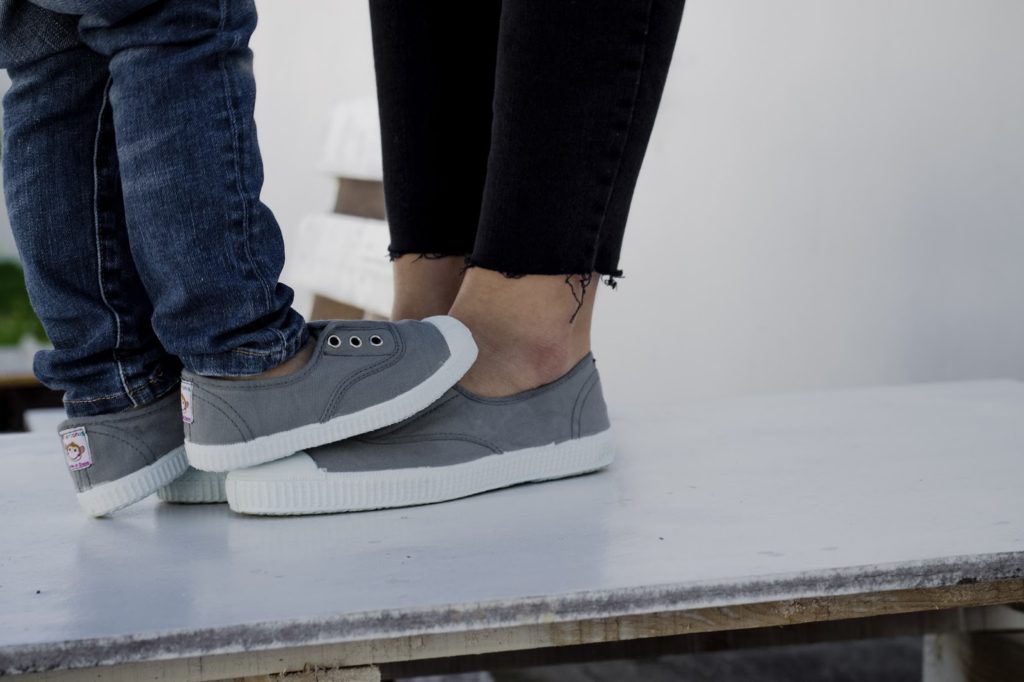 I particularly like this look because we are wearing the famous trainers without laces and with a strawberry scent from Pisamonas. I already had my eye on them for my son, but I didn’t imagine that they also sold for women, mums… So, we matched 💕.